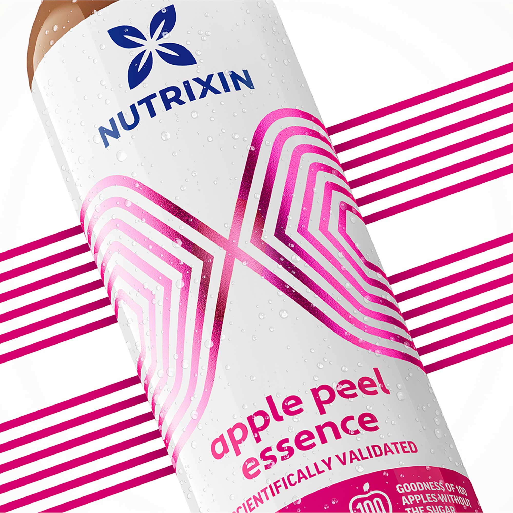 Nutrixin Peel Essence is a range of powerful antioxidants and anti-inflammatory beverages. Our brief was to create a brand and packaging design to reflect a strong vitamin benefit, while at the same time project a modern and contemporary lifestyle visual look. Science can be intimidating, so creating a simplified identity and introducing bold graphics and clear benefits gave the brand and packaging a compelling look without looking dry or overly medical.